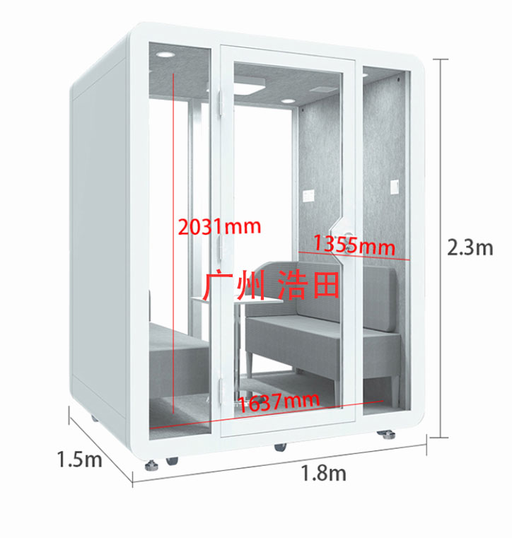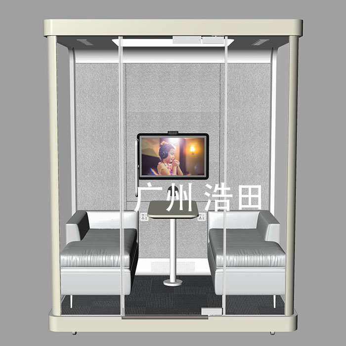 二面玻璃豪華洽談室隔音電話亭這種小型封閉空間的健康設計應該著重于其內部時刻保持新鮮空氣。如果在公共場所使用更要考慮到其內飾面的衛生、也需要適當的視覺隱私、可提供更舒適的坐姿和給使用者更少的心理壓力。前部主要由玻璃制成,任何人都可以看到它是否被占用而不會盲目地進入,內設有一個可容納筆記本電腦的小壁架和一張椅子,與此同時,該隱私倉內置風扇和通風系統,以確保空氣流通。