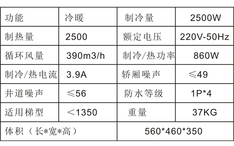 3、特強送風系統設計,送風均勻,制冷量大,使轎廂倍感寧靜、涼爽、舒適、愜意。